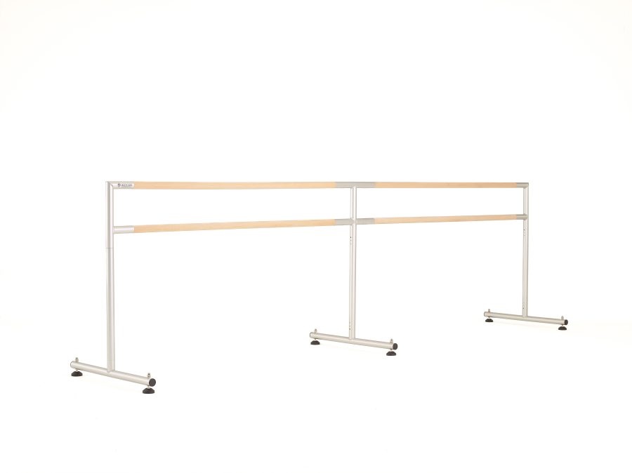 Harlequinโs Studio Series Ballet Barre Connector allows you to combine two Harlequin Studio Series Ballet Barres to create an 8โฒ or 12โฒ freestanding ballet barre. It is constructed from anodized aluminum with a smooth silver finish. Use (2) Harlequin 4ft. Freestanding or (2) Harlequin 6ft Freestanding Studio Series Ballet barres to create the extended size barres. Studio Series Ballet Barres are sold separately. Bundle packages are available through the shop.