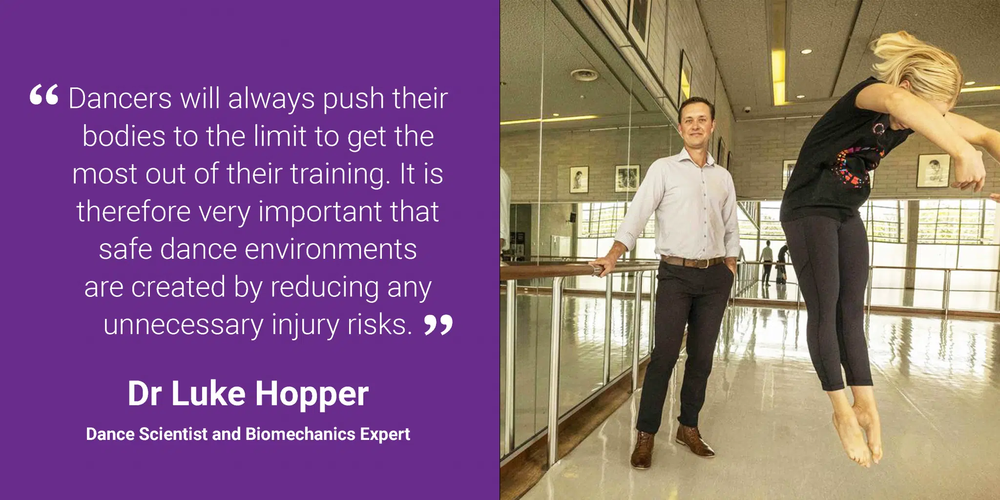 El Dr. Luke Hopper, científico de la danza y experto en biomecánica, consideró que la aparición de lesiones era demasiado frecuente en la danza. A través de su investigación, descubrió que «se puede exigir a los bailarines que actúen sobre suelos de calidad inferior, lo que demostró afectar a la tensión de la articulación del tobillo durante los movimientos de danza. Los bailarines también demostraron una capacidad distintiva para percibir los cambios en las propiedades del suelo de danza.»